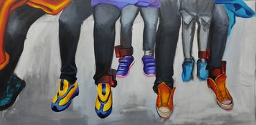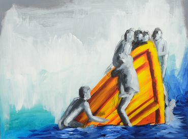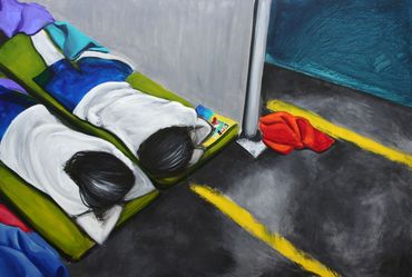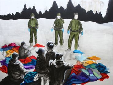 As a way to highlight the negative undertones in these images, the process of drawing and painting become key. Often, immigrants are not treated like individuals but rather generalized as a mass of people. In my work, vivid colors and the sketched line become mechanisms for emphasizing stereotypes. Since news images are perceived to be a factual documentation of an event, it is important to recognize the bias inherent in any media source, and I hope my work helps to reveal these prejudices.