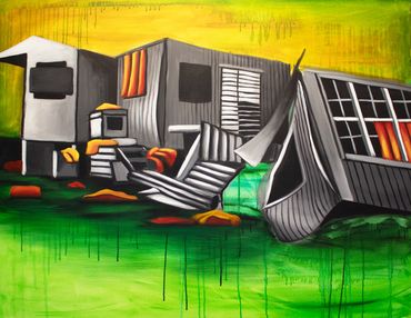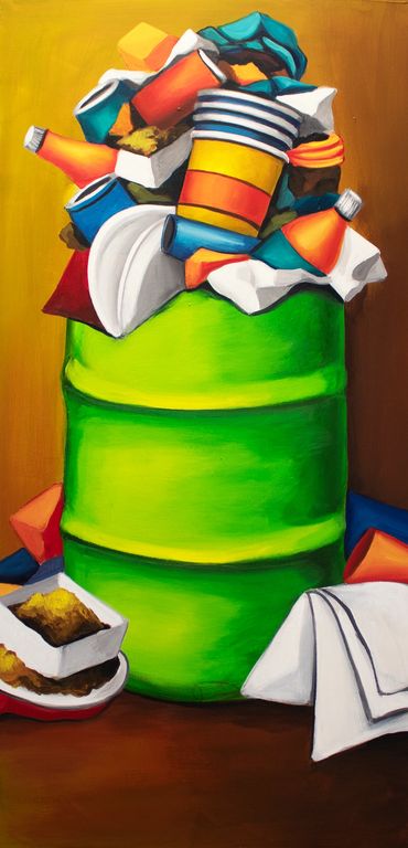 This body of work explores the environmental impact on human migration. Ecological disasters such as hurricanes, earthquakes, major flooding and so forth are some of the instances that can lead to vast migration. This work investigates American culture as one of the leading causes for these catastrophic events. From cheap clothing to pre-packed meals we are constantly encouraged to buy, consume then dispose because products are convenient and cheap to buy again. Eventually this creates an excess amount of waste that leads to environmental hazards.